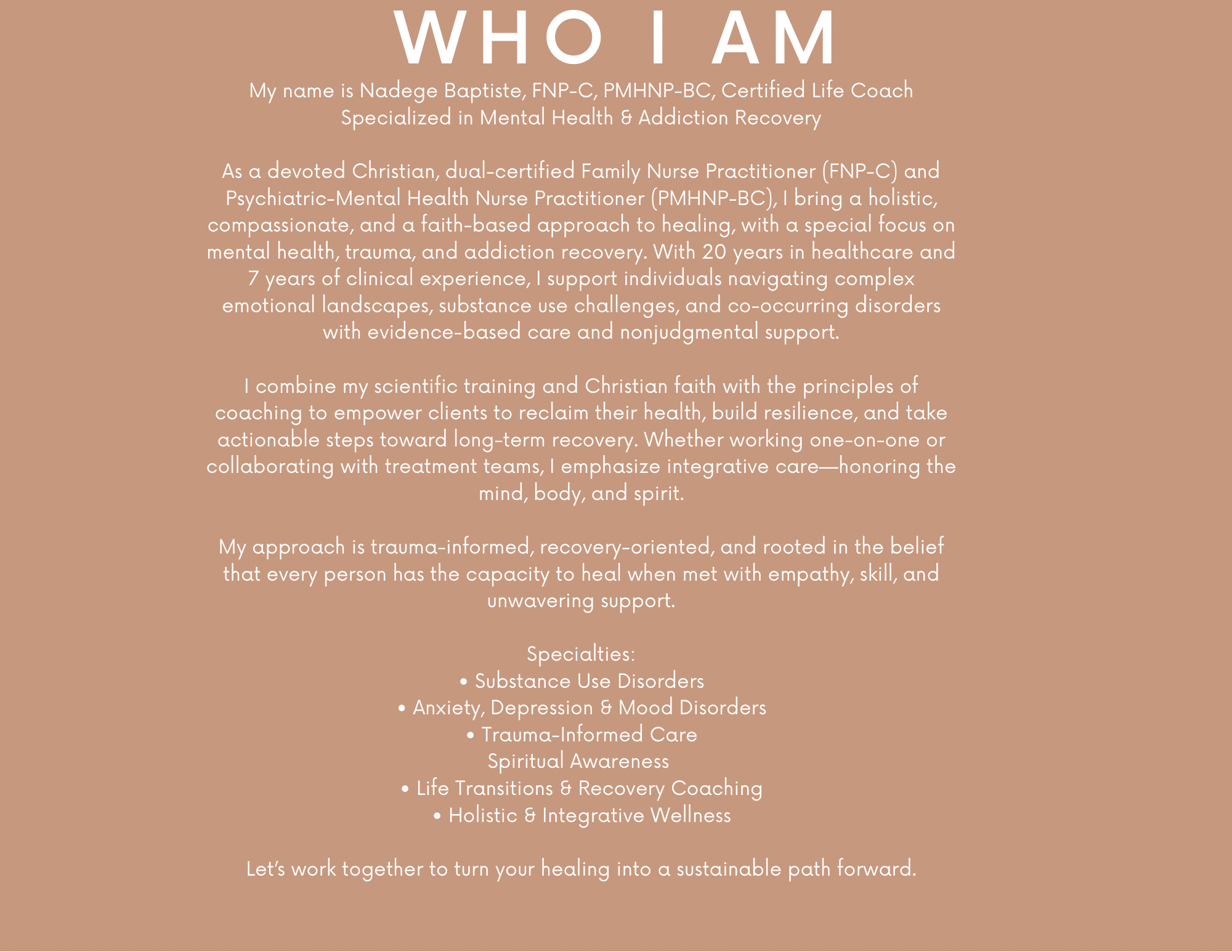 What we want readers to know is this: you don’t have to navigate mental health challenges alone. Whether you’re a professional managing high expectations or someone seeking faith-aligned support, we are here to walk alongside you and help you move toward healing, stability, and growth.